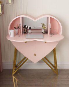 Bàn trang điểm gương trái tim đa năng bo góc mềm mại